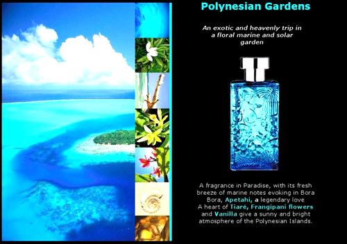 Al primer contacto, "Polynesian Gardens" nos envuelve con notas refrescantes de agua de mar, evocando la frescura del océano Pacífico y sus costas vírgenes. Es una introducción perfecta a un viaje olfativo inigualable.