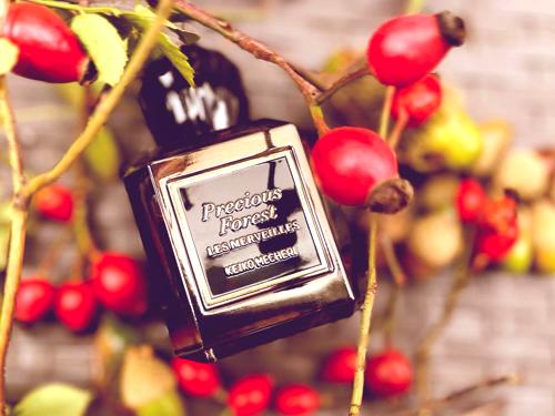 La fragancia "Precious Forest" de Keiko Mecheri es un tributo enigmático a los misteriosos bosques, envolviendo a quien la lleva en un aura de elegancia y profundidad inigualables. Al atomizarla, se despliega inicialmente una combinación embriagadora de almendra y rosa, creando un preludio delicado y sofisticado que capta la esencia de un paseo matinal por un bosque encantado.