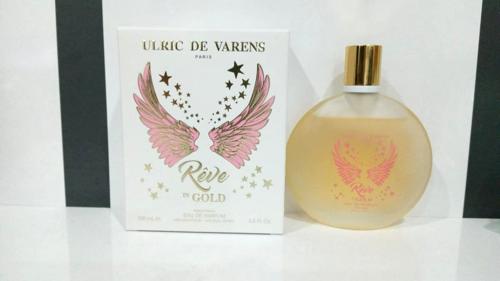 Estaba en la búsqueda de un perfume asequible para hacer un regalo y me topé con esta joya. Quiero compartir mi experiencia así que subí una foto para mostrarles exactamente sobre cuál estoy hablando: ULRIC DE VARENS Reve IN GOLD. Se distingue por su caja blanca y el icónico logo de alas de ángel. Me llamó la atención una versión con caja rosa en el probador, que resultó tener un aroma más dulce y suave. Pero cuando descubrí Reve IN GOLD, ¡vaya sorpresa! Su aroma es increíblemente similar a FAIRE FOLLIE de Carlo Corinto, uno de mis favoritos por ser fresco, frutal, floral y nada empalagoso. Aunque su duración no supera las 6 horas, algo que comparte con Faire Follie, el precio de aproximadamente $8 USD lo hace perfecto para mi uso diario en el trabajo.