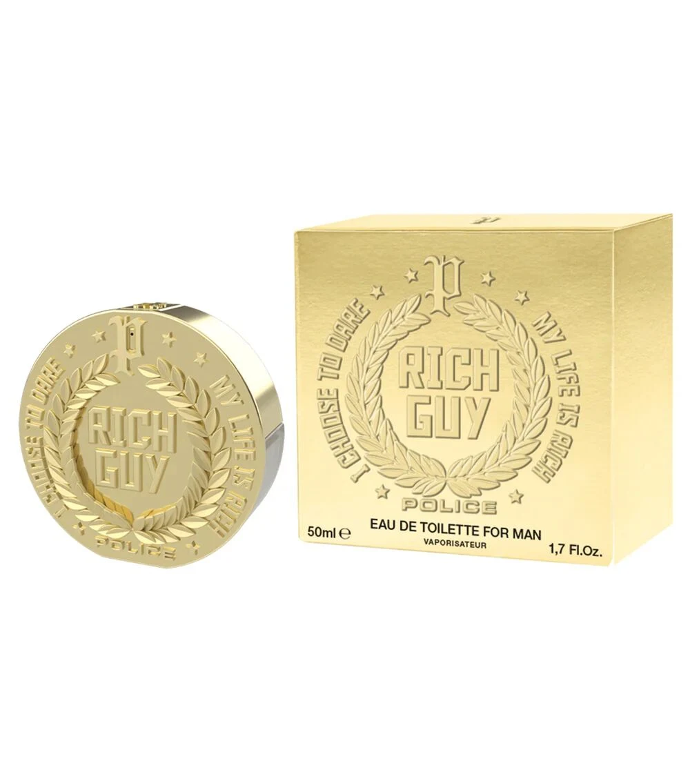 Rich Guy de Police es una creación olfativa de la familia para hombres, presentada como una nueva fragancia lanzada en 2025. La nariz detrás de esta composición es Alexandra Monet. La pirámide olfativa se despliega con notas de salida de jengibre nigeriano, pimienta negra y cascalone; un corazón formado por flor de azahar del naranjo, absenta y hojas de tabaco; y un fondo cálido y persistente de haba tonka, amberwood y gamuza.