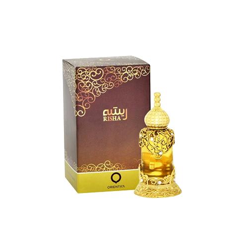 A medida que la fragancia se asienta en la piel, emerge una base cautivadora de notas amaderadas y almizcle, aportando una calidez y una profundidad que prometen perdurar. Cada nota de Risha Orientica ha sido cuidadosamente seleccionada para construir una experiencia olfativa que es a la vez compleja y armoniosa, dejando una huella imborrable en aquellos afortunados de percibirla.