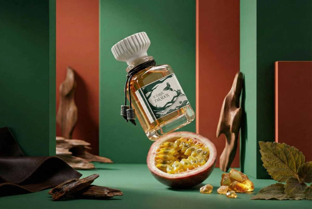 Solaris Paradox de Ethereal Parfums es una creación de la familia olfativa oriental amaderada, diseñada para hombres y mujeres. Esta nueva fragancia, presentada en 2025, revela una pirámide olfativa compleja: las notas de salida despliegan bergamota de Calabria, aromas afrutados, mango y gominolas; el corazón floral y especiado se construye sobre rosa de Taif y azafrán; mientras que el fondo ofrece una persistencia cálida y exótica con madera de oud, benjuí, ámbar y almizcle.