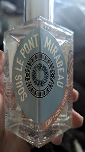 Marina, fresca y con fondo. Tras un día lleno de decepciones de la vida adulta, como ver a profesionales ignorantes o reseñistas sin ortografía, es curioso querer volver a algo como Sous Le Pont Mirabeau en vez de rendirse. No es la quinta maravilla marina, pero no busca la banalidad. Entra punzante, química al principio, con un aire ozónico y verde. Luego viene el mar amaderado, no de muelle sino de bosque que se encuentra con la playa. Me recuerda a las rías gallegas o Asturias. Quizás a los franceses les evoque el poema de Apollinaire. No es difícil ni insulsa, versátil para el calor, donde proyecta bien; en frío se apaga. Me ha gustado, recomiendo probarlo pero no comprar a ciegas.