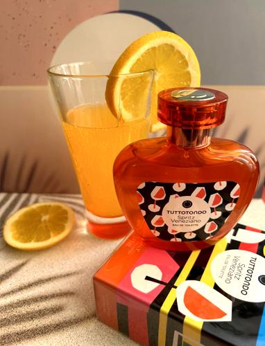 Spritz Veneziano Tuttotondo: Un viaje sensorial que captura la esencia de los atardeceres italianos, esta fragancia se inspira en la tradicional bebida del Véneto, el Spritz. Con una atomización inicial, se revela un coctel chispeante de Prosecco y cítricos, donde la naranja y el limón (conocido también como lima ácida) se entrelazan en una danza vibrante y refrescante, evocando las calles iluminadas por el sol de Venecia.