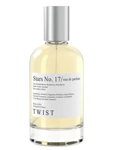 Stars No. 17 de Twist es una fragancia de la familia olfativa Floral Frutal Gourmand para Mujeres. Stars No. 17 se lanzó en 2022. Las Notas de Salida son fresa, frambuesa, bayas silvestres y azúcar; las Notas de Corazón son jazmín y violeta; las Notas de Fondo son ámbar y almizcle.
