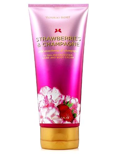 Es exactamente fresa y champaña. La crema hace que la fragancia sea más amable y exalte lo delicioso del perfume. Perfecto para climas cálidos. Me encanta.