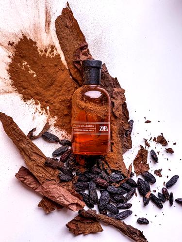La fragancia Tobacco Collection Unexpected Fresh Spicy de Zara es una invitación a sumergirse en un mundo donde la tradición y la modernidad se encuentran en un equilibrio perfecto. En esta exquisita composición, la calidez especiada de la canela y el aroma rico y maltoso del whisky dan inicio a una experiencia olfativa inolvidable, que se ve inmediatamente refrescada y elevada por las notas cítricas de la bergamota.