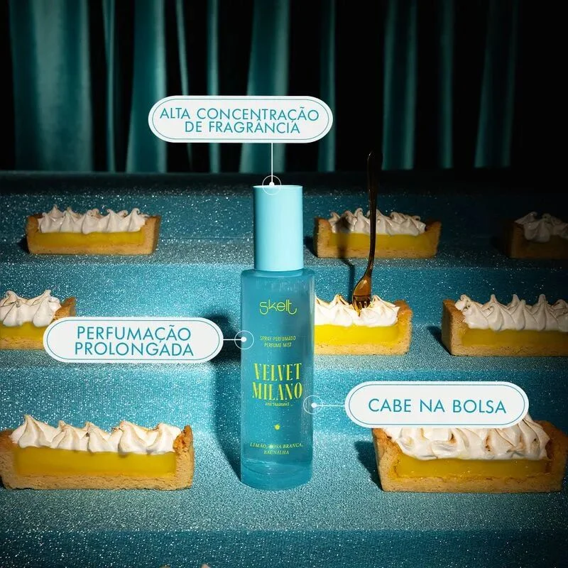 Velvet Milano de Skelt es una fragancia de la familia olfativa floral frutal gourmand para mujeres. Esta creación, lanzada en 2024, despliega una pirámide olfativa donde las notas de salida combinan limón, lima ácida, bergamota y manzana. El corazón de la composición evoca jazmín, frutas rojas y rosa blanca, mientras que las notas de fondo cierran la experiencia con vainilla, sándalo y almizcle.
