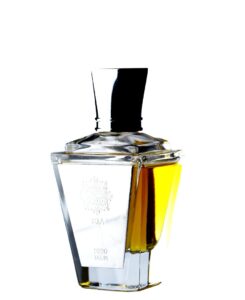 El incienso de olíbano, con su aroma místico y casi sagrado, introduce una dimensión espiritual, mientras que el cuero y el vetiver añaden una textura terrosa y robusta. La atmósfera se enriquece luego con el inconfundible aroma del tabaco y la madera de oud, creando una sensación de calidez y sofisticación. Rematando este complejo buqué, el cipriol aporta un toque exótico y el almizcle con sándalo suavizan el perfil, garantizando una fijación duradera que deja un rastro seductor.