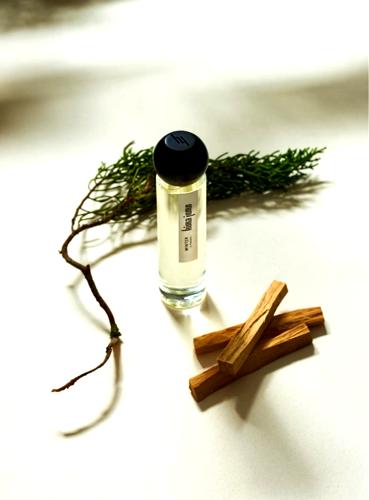 A medida que la atomización se asienta, se revela un corazón robusto compuesto por el aroma vibrante de ciprés y agujas de pino que te sitúa en medio de un antiguo bosque, sereno y majestuoso. La esclarea añade un matiz herbal y ligeramente floral que equilibra la composición, envolviendo los sentidos en un ambiente de paz y tranquilidad.