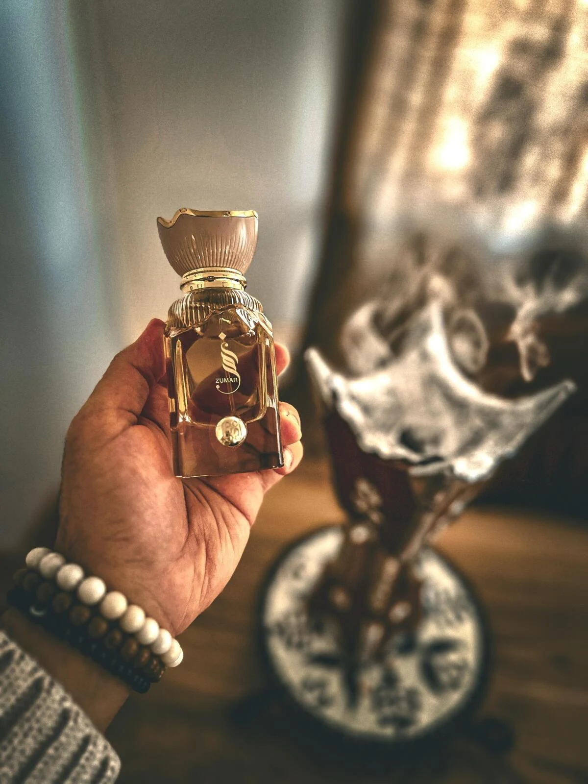 Zumar de Ahmed Al Maghribi es una fragancia de la familia olfativa floral frutal gourmand para hombres y mujeres. Las notas de salida son azafrán y pera; las notas de corazón son rosa, azafrán, jazmín, madera de cachemira, pachulí, vetiver, canela y flor de azahar del naranjo; las notas de fondo son madera de oud, cuero, frambuesa, azafrán, violeta, ámbar, almizcle, sándalo, ambroxan, almizcle ambreta, ámbar gris y musgo de roble.